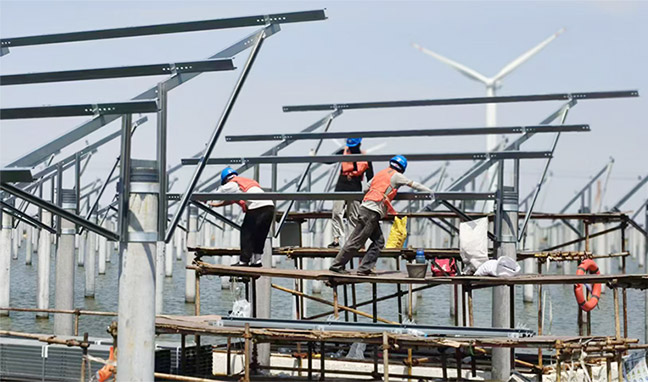 9月19日,由集團(tuán)和悅達(dá)集團(tuán)、興海控股集團(tuán)合資建設(shè)的悅海灌東鹽場(chǎng)150MW漁光互補(bǔ)光伏發(fā)電項(xiàng)目獲《中國日?qǐng)?bào)》海外版報(bào)道!2025-09-19 -